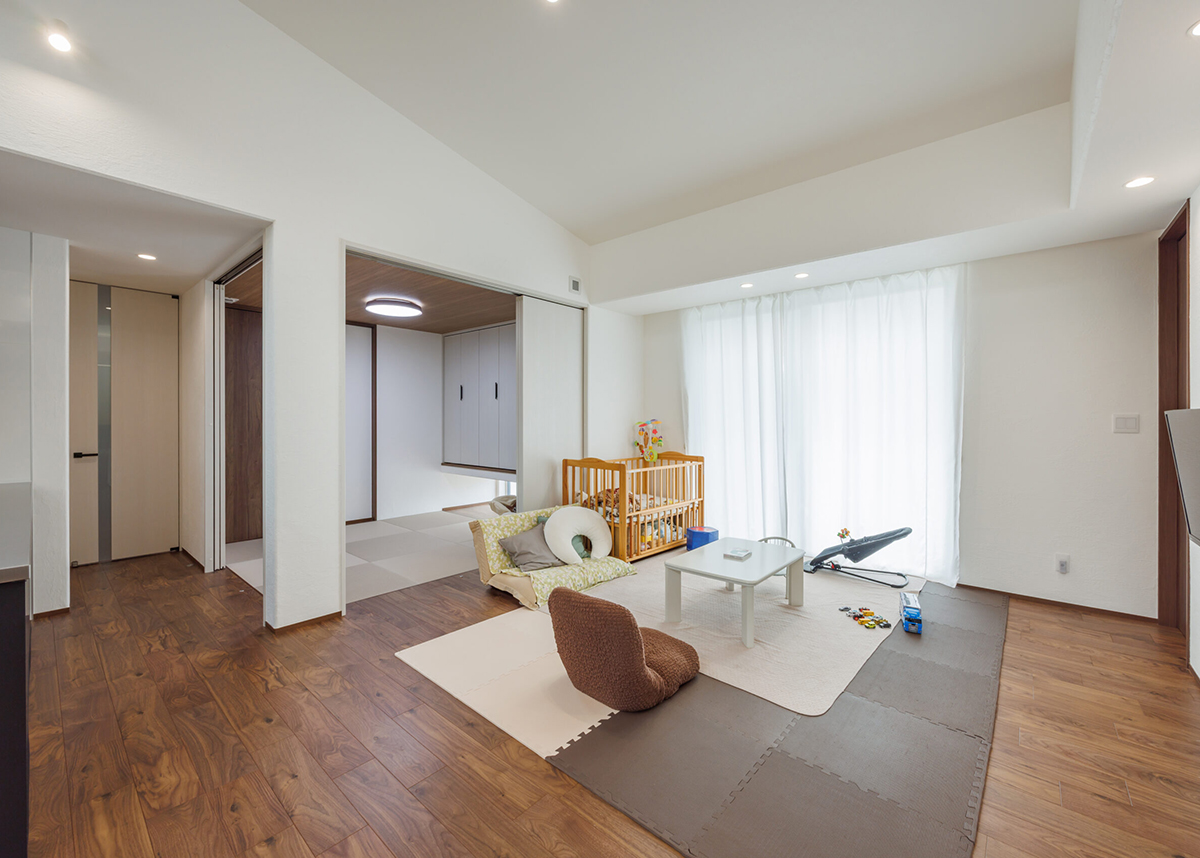 4.5帖のタタミコーナーは、リビングからもキッチンからも見えるのでお子様が遊んでいる様子やお昼寝している様子を安心して見届けることができます。